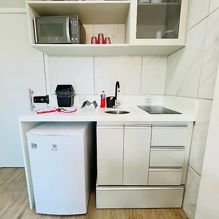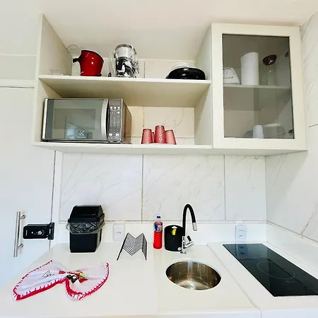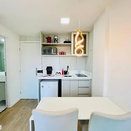 La Villa Flat próximo a Porto de Galinhas - Cupe Living 207 dispone de una cocina completa con menaje de cocina. - ❓